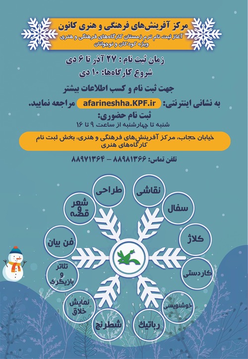 آغاز ثبت نام کارگاه های حضوری ترم زمستان1401 مرکز آفرینش های فرهنگی هنری کانون